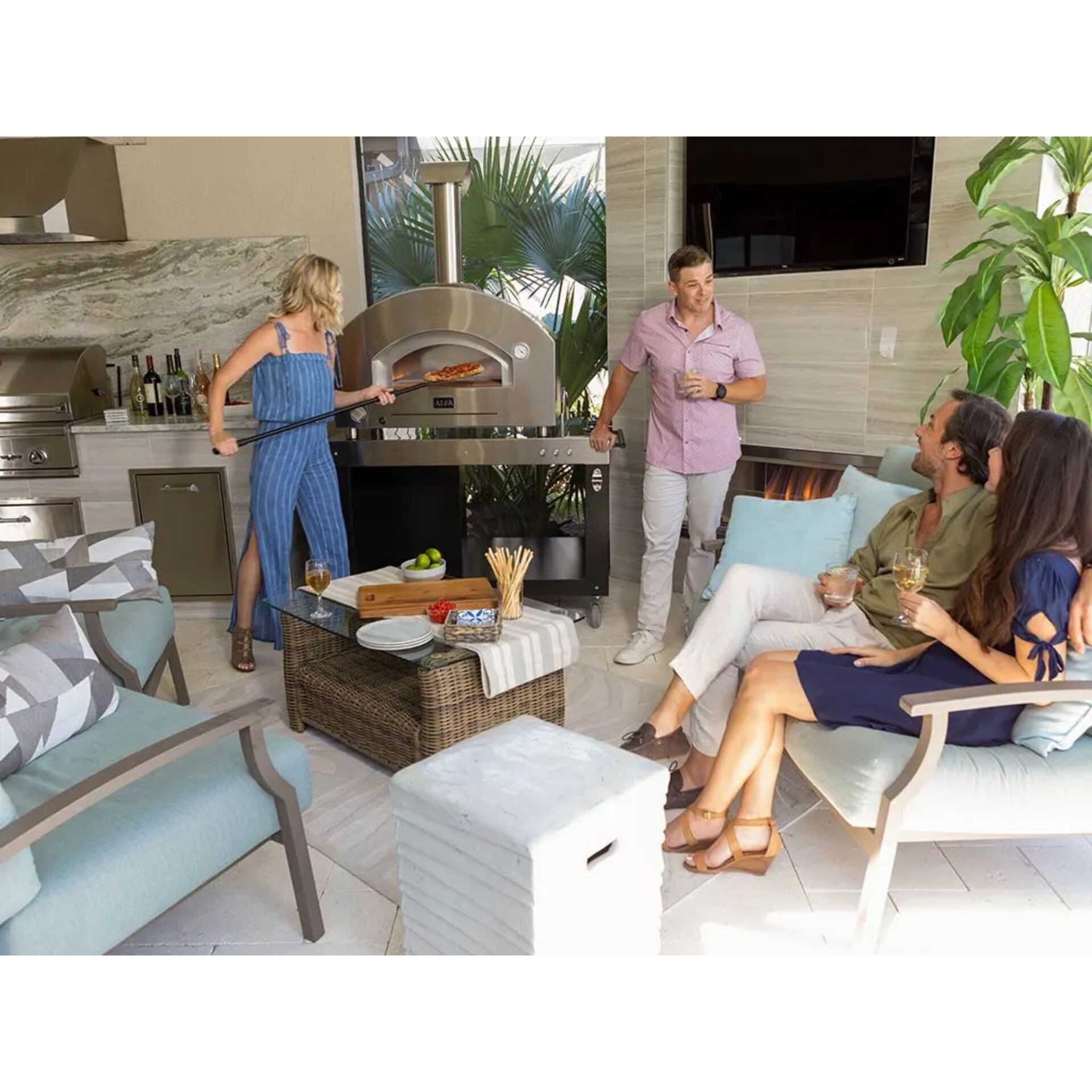 2-Pizze iz Alfa linije Futuro ima potpuno ručno izrađen luk od nehrđajućeg čelika koji se savršeno uklapa u dizajn moderne vanjske kuhinje,