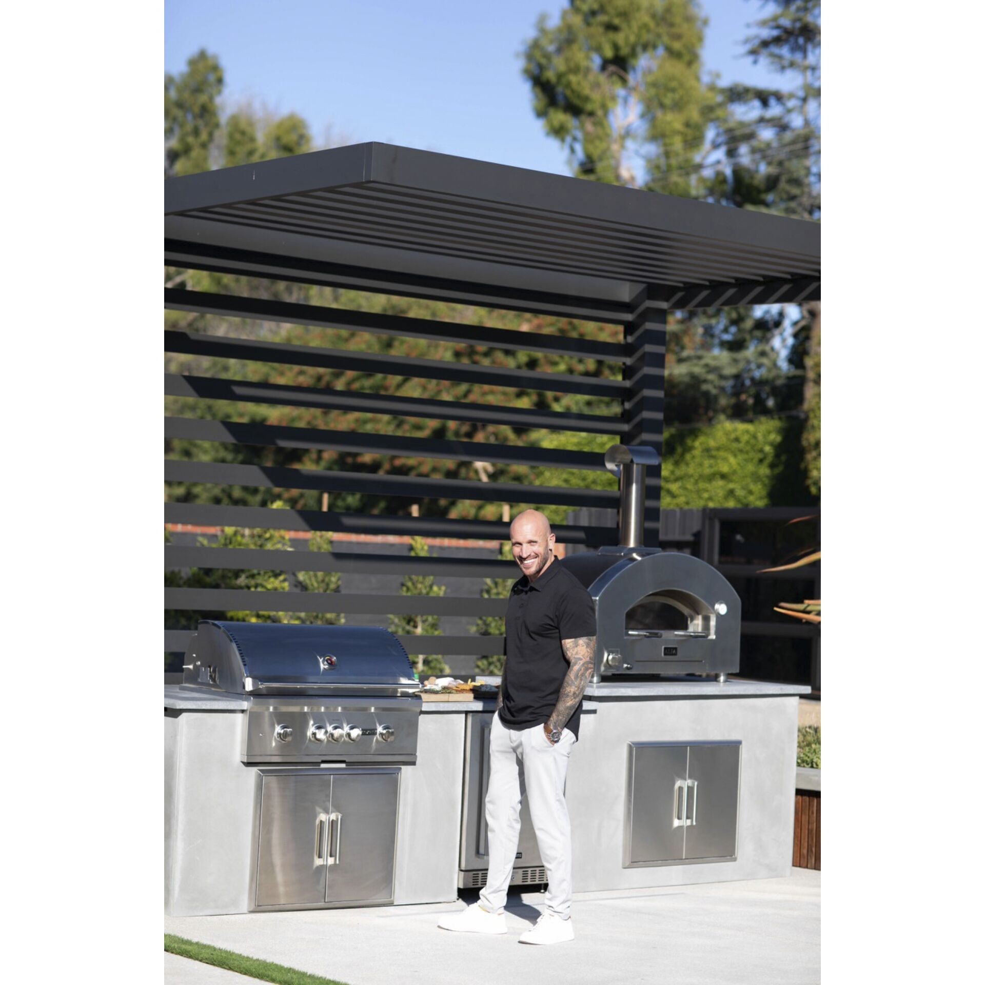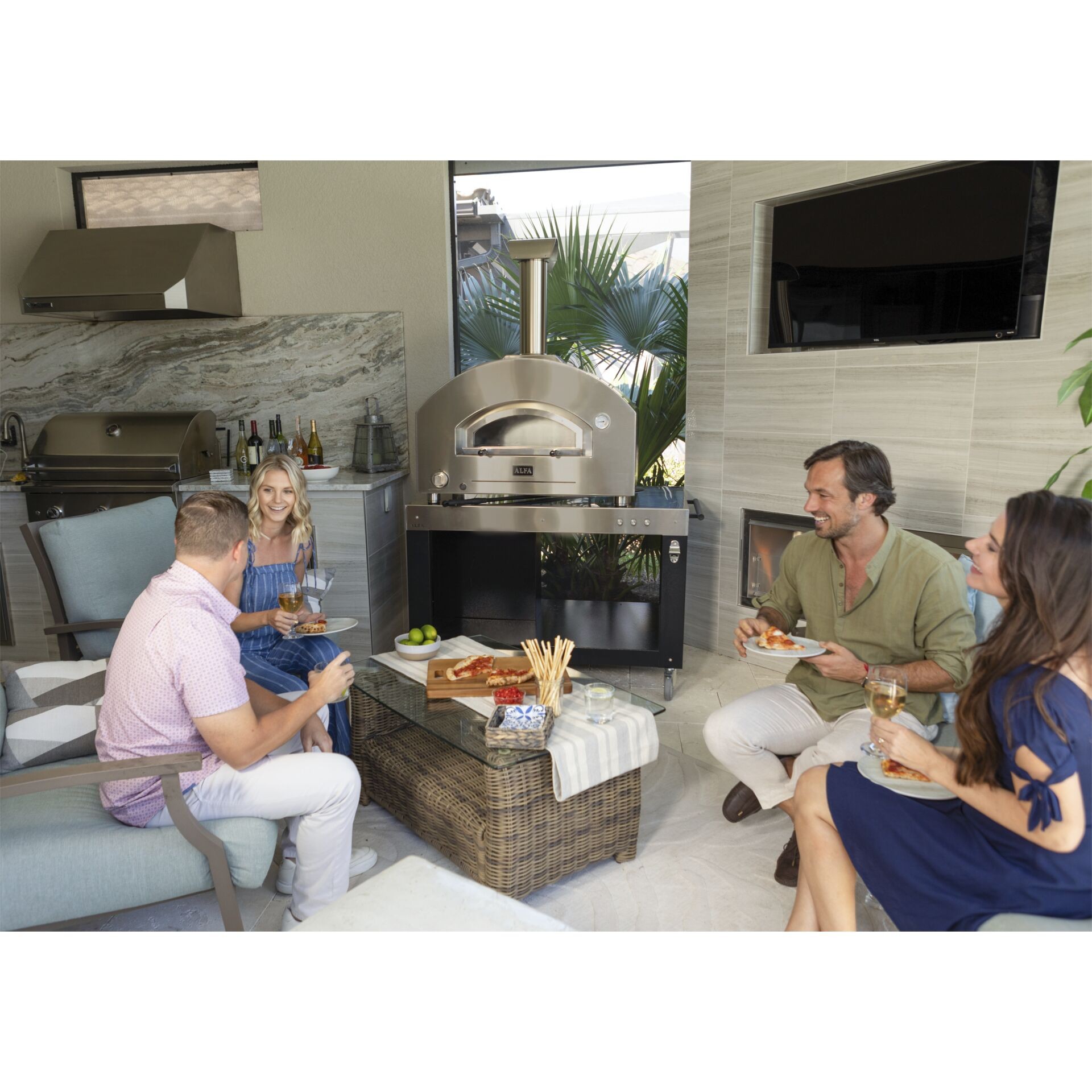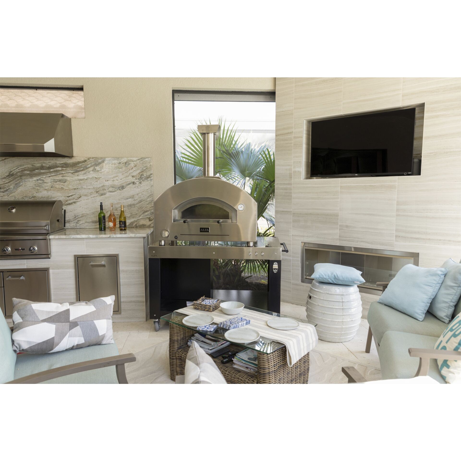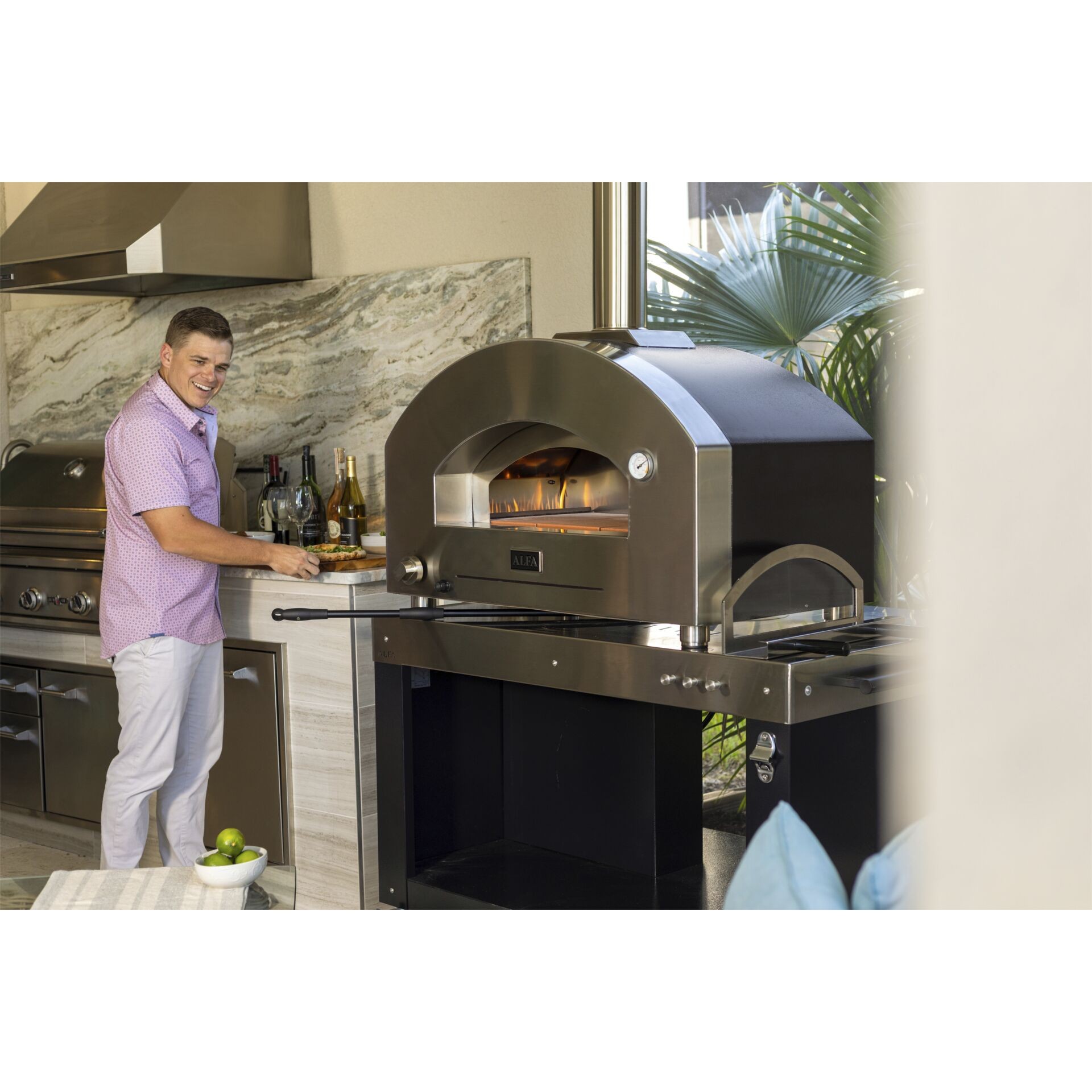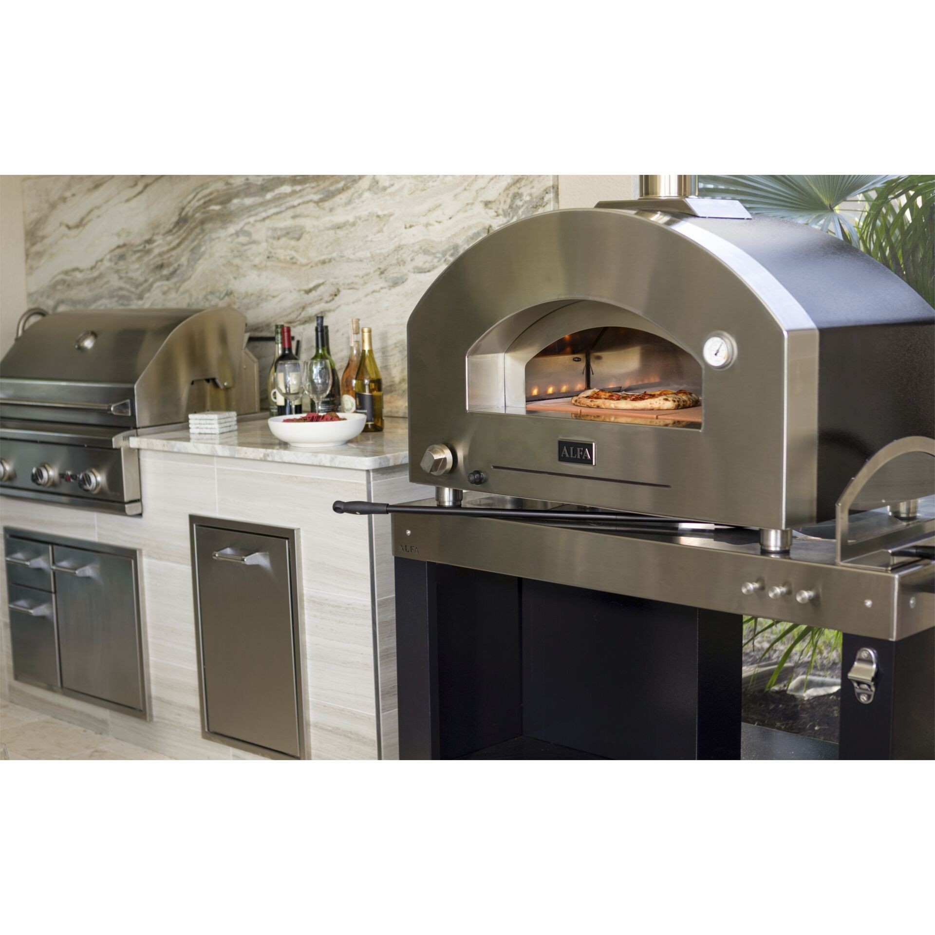 2-Pizze iz Alfa linije Futuro ima potpuno ručno izrađen luk od nehrđajućeg čelika koji se savršeno uklapa u dizajn moderne vanjske kuhinje,