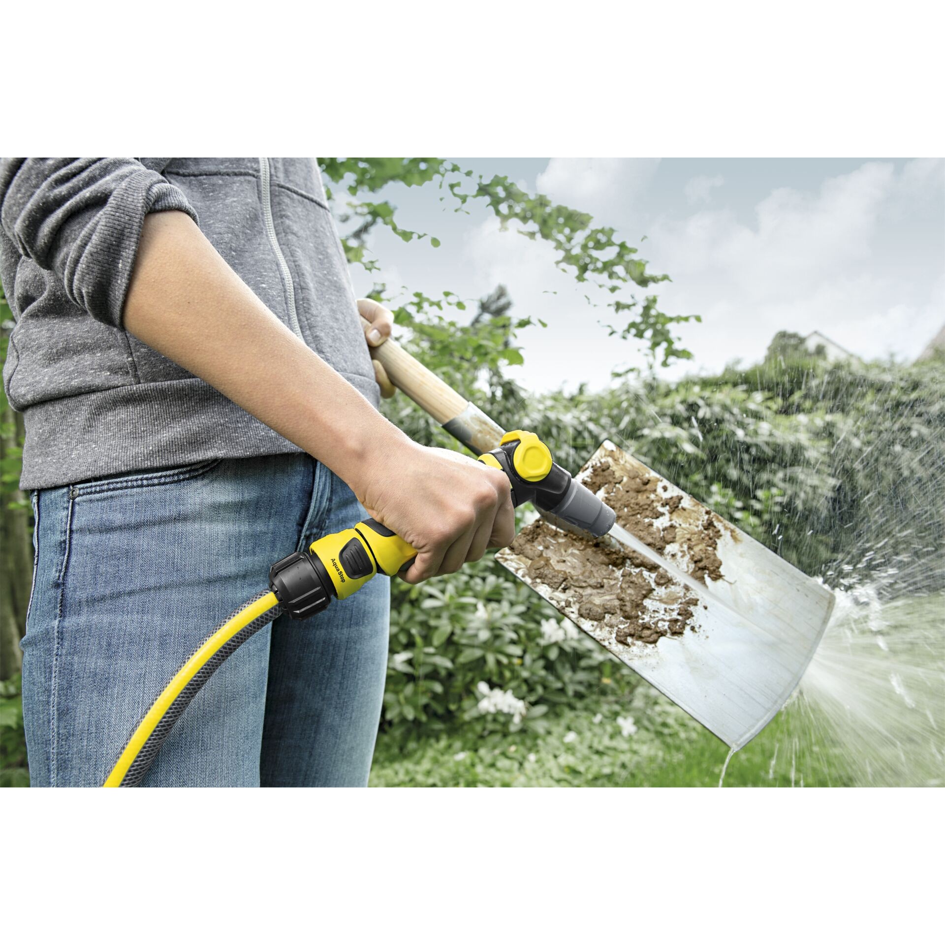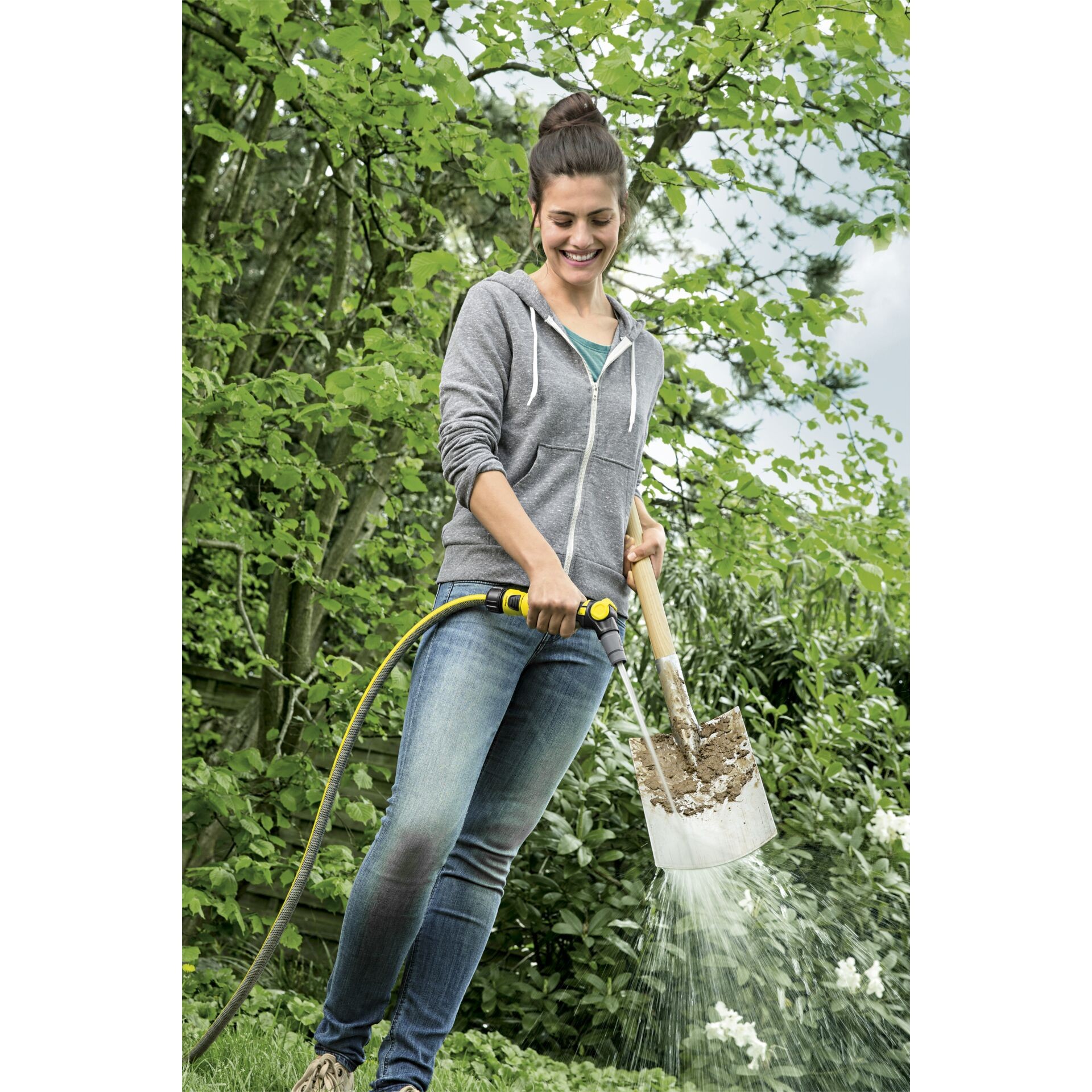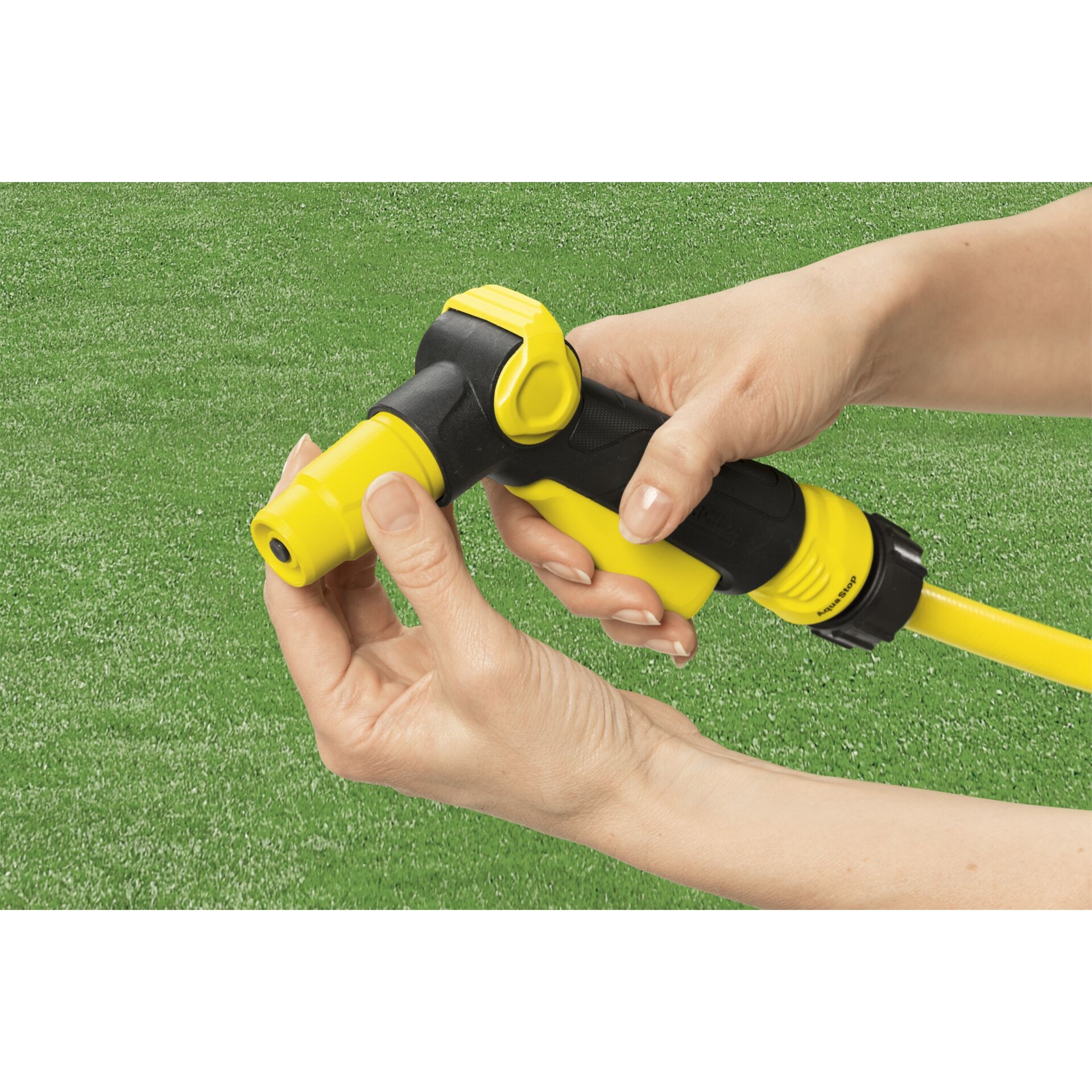 Pištolj za prskanje čini zalijevanje vrta posebno praktičnim. Zahvaljujući okidaču koji se može zaključati s funkcijom zatvaranja, protok vode u vrtnoj prskalici može se trajno održavati - bez stalnog pritiskanja.