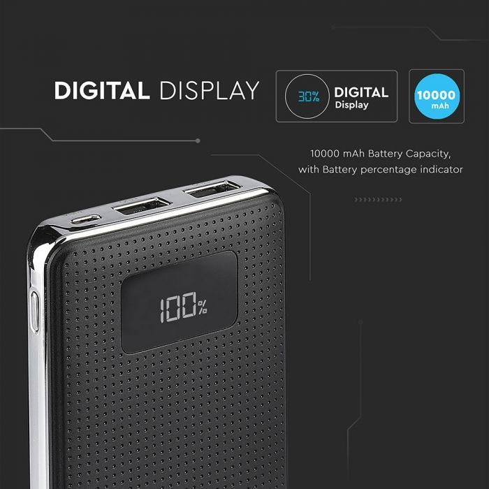 Prijenosni punjač 10000 Mah Power Bank LED ekran crni