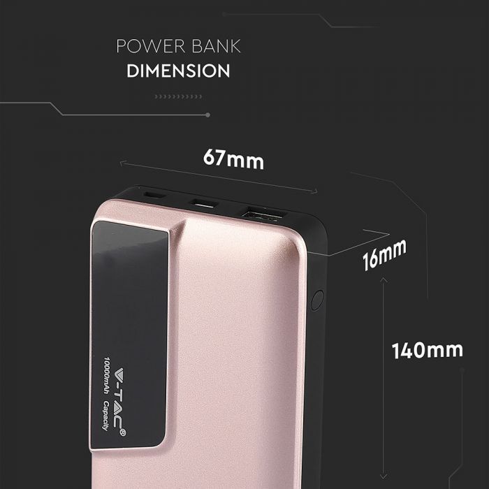 Prijenosni punjač 10000 mAh Power Bank rozi