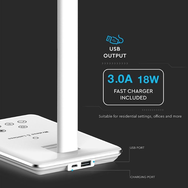 Stolna svjetiljka 5W s bežičnim punjenjem 3u1, bijela