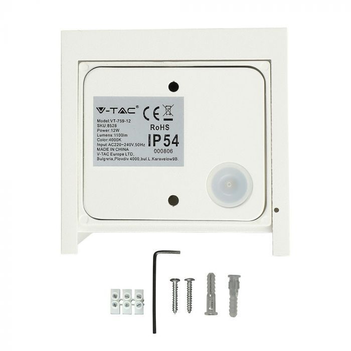 Zidna lampa 12W četvrtasta 3000K IP65 bijela